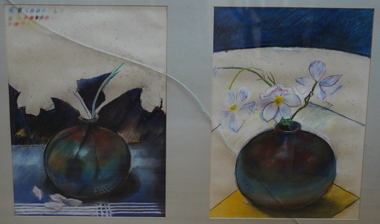 Mid century, preparatory studies, still life’s, two pastels, framed as one, each 40 x 28cm