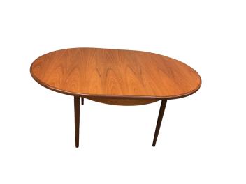 A G Plan Fresco teak extending dining table, 168cm extended, depth 122cm, height 71cm and six chairs