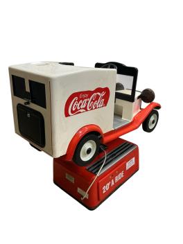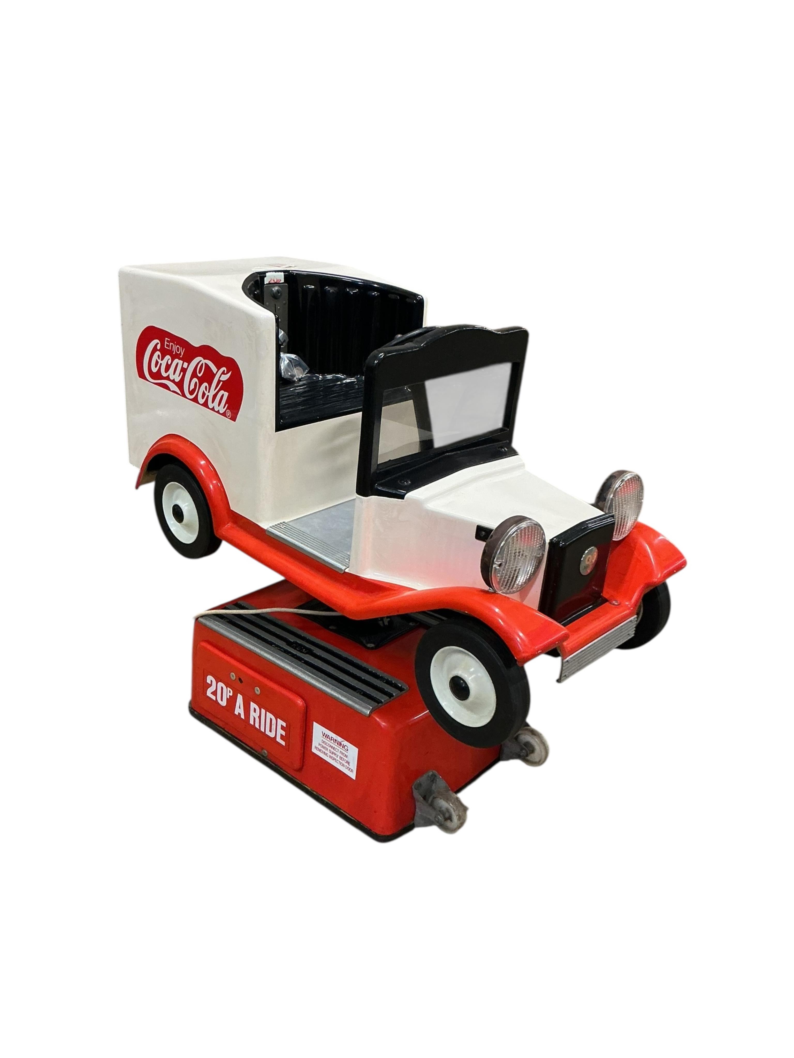 Lot 136 , A coin operated Coca-Cola child’s ride, in the form of a branded van, manufactured by R.G.M., primarily of glass fibre construction, operated with a 20p coin, 92cm high, 42cm wide, 110cm deep