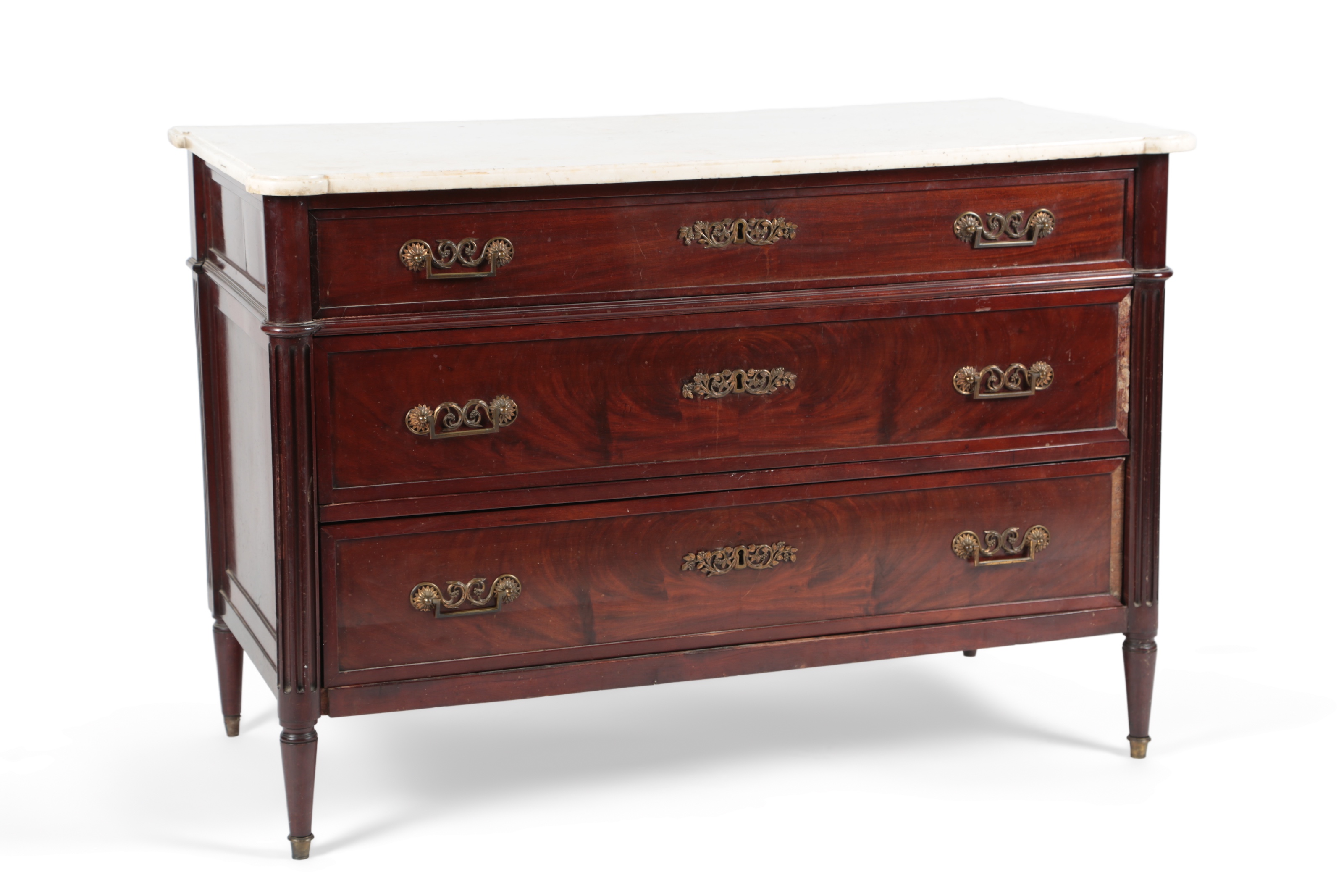 Lot 294 , A French Directoire white marble topped mahogany commode