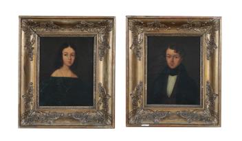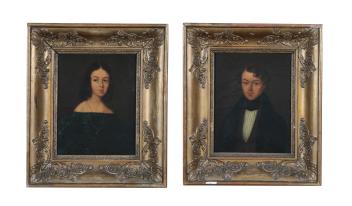 Lot 133 , Naïve School, 19th century, Portraits of a husband and wife