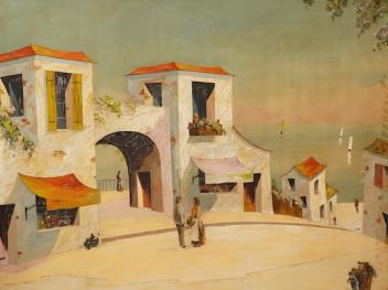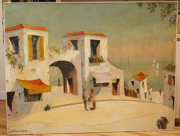 Lot 767 , In the manner of D’Oyly John, Vernon Henri (20th. C), Continental harbour scene, signed, oil on board, 102 x 133cm