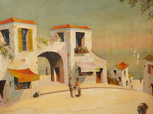 In the manner of D’Oyly John, Vernon Henri (20th. C), Continental harbour scene, signed, oil on board, 102 x 133cm