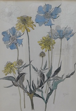 Monogrammist MM, Botanical study, 1941, monogrammed and dated in pencil, pencil and watercolour, 48 x 34cm