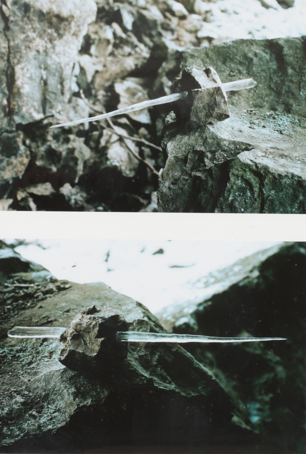 Andy Goldsworthy, (b. 1956), ‘Icicle, broken in two, frozen to the rock with spit/melted ice, held until stuck, Brough, Cumbria, Jan ‘82’
