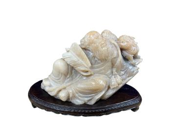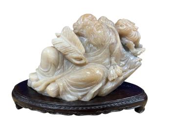 Lot 423 , A large Chinese soapstone carving of an immortal, on stand with box, 8cm high