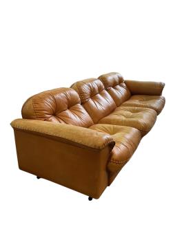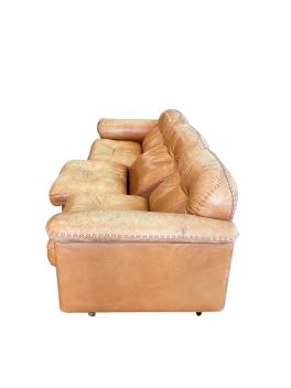 A De Sede DS101 sand leather sofa, width 260cm, depth 90cm, height 70cm, together with three armchairs