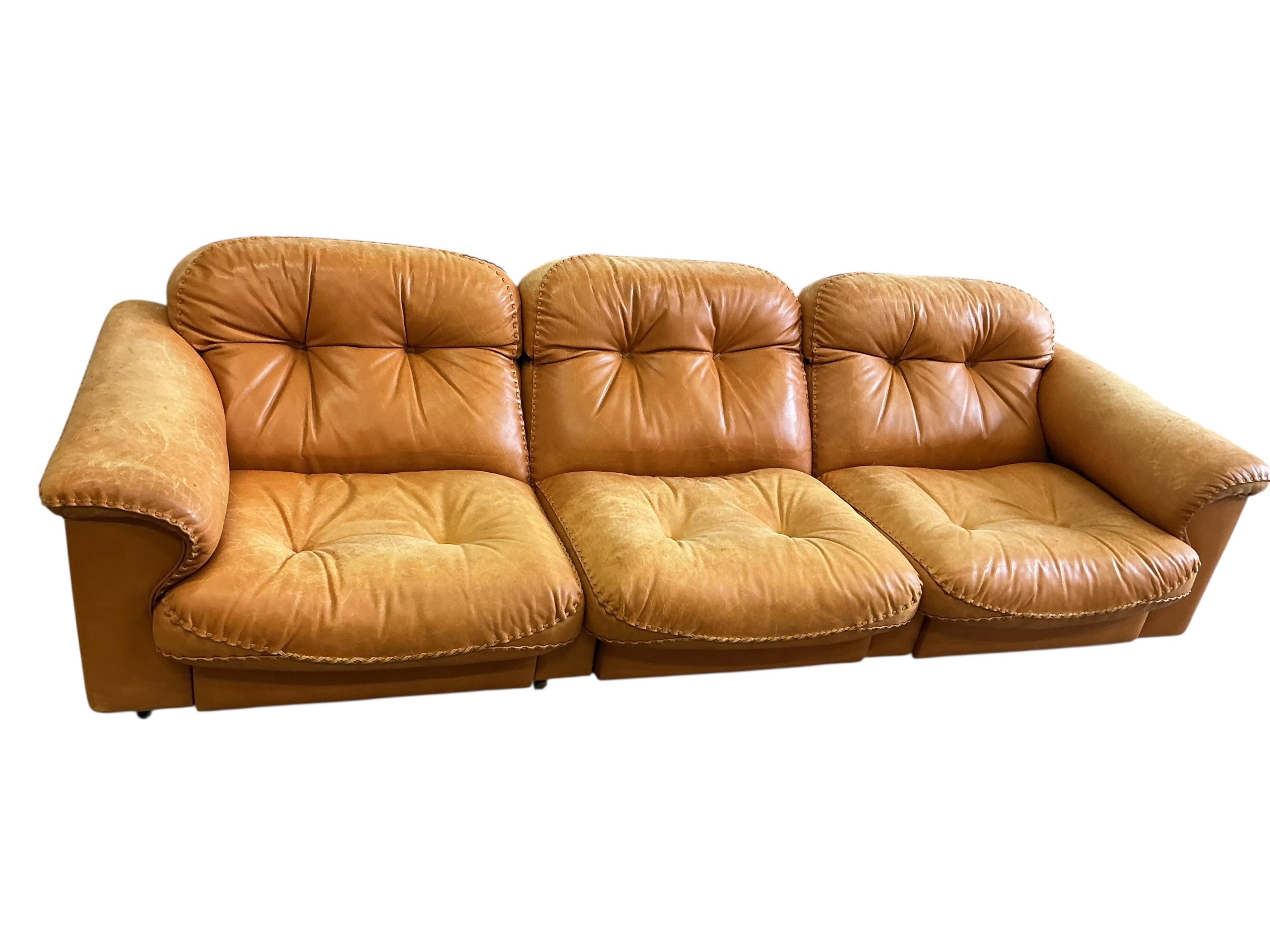 Lot 3423 , A De Sede DS101 sand leather sofa, width 260cm, depth 90cm, height 70cm, together with three armchairs