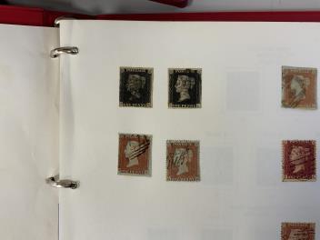 Lot 2164 , A collection of Great Britain and World postage stamps contained within ten stamp albums, including incomplete Stanley Gibbons dedicated Great Britain stamp albums containing; two One Penny black stamps, early One Penny