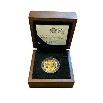 British gold coins, Elizabeth II, Royal Mint gold proof sovereign, 2008, in case of issue with certificate
