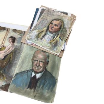 Lot 757 , Ruby Bostock (1902-1993), a collection portrait studies on paper, a watercolour study, ‘Craft at Chichester’ and pastel landscapes, most unframed, largest 60 x 48cm