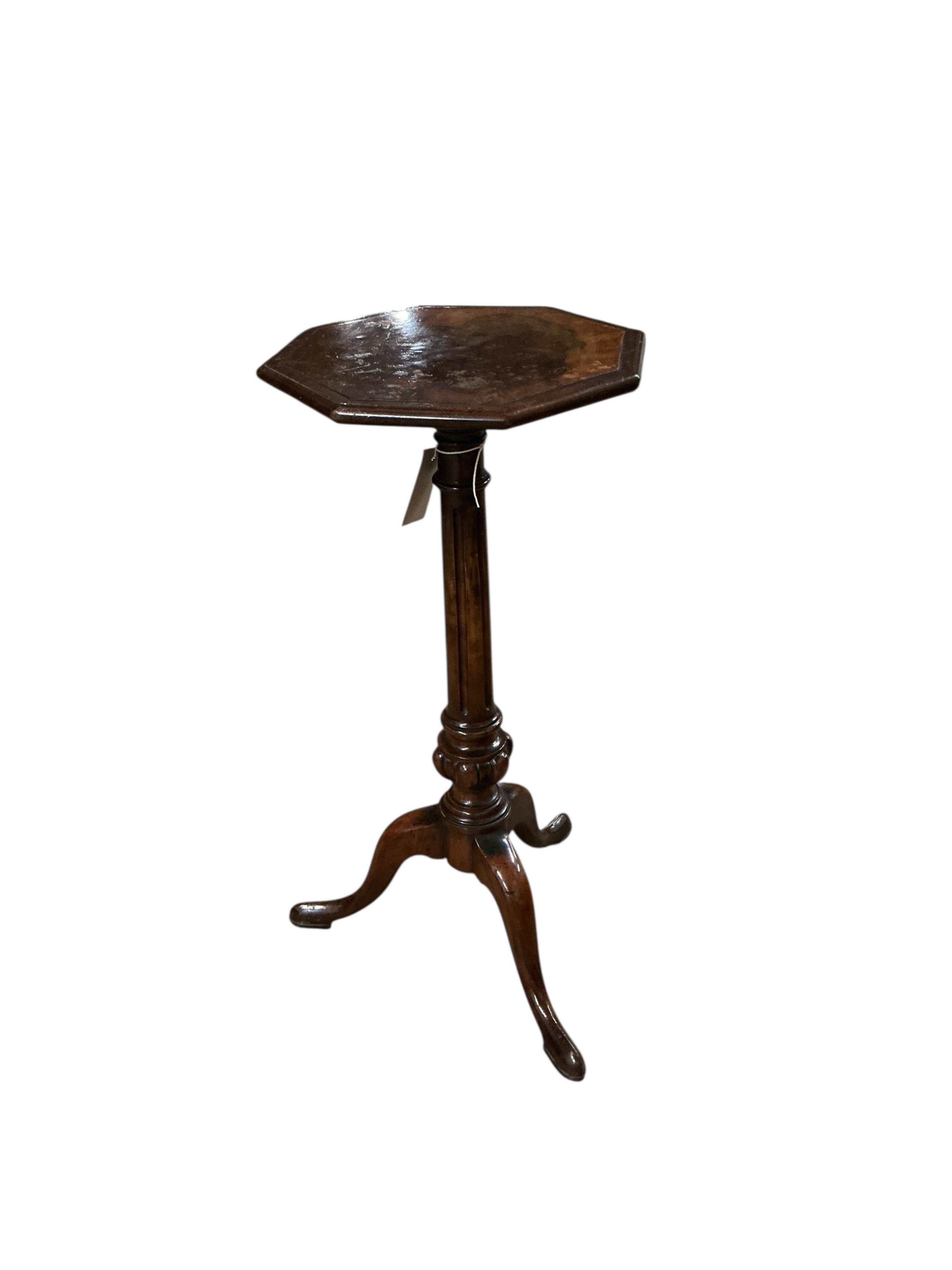 Lot 274 , A George II walnut kettle stand with octagonal top on fluted column and cabriole tripod, height 60cm.