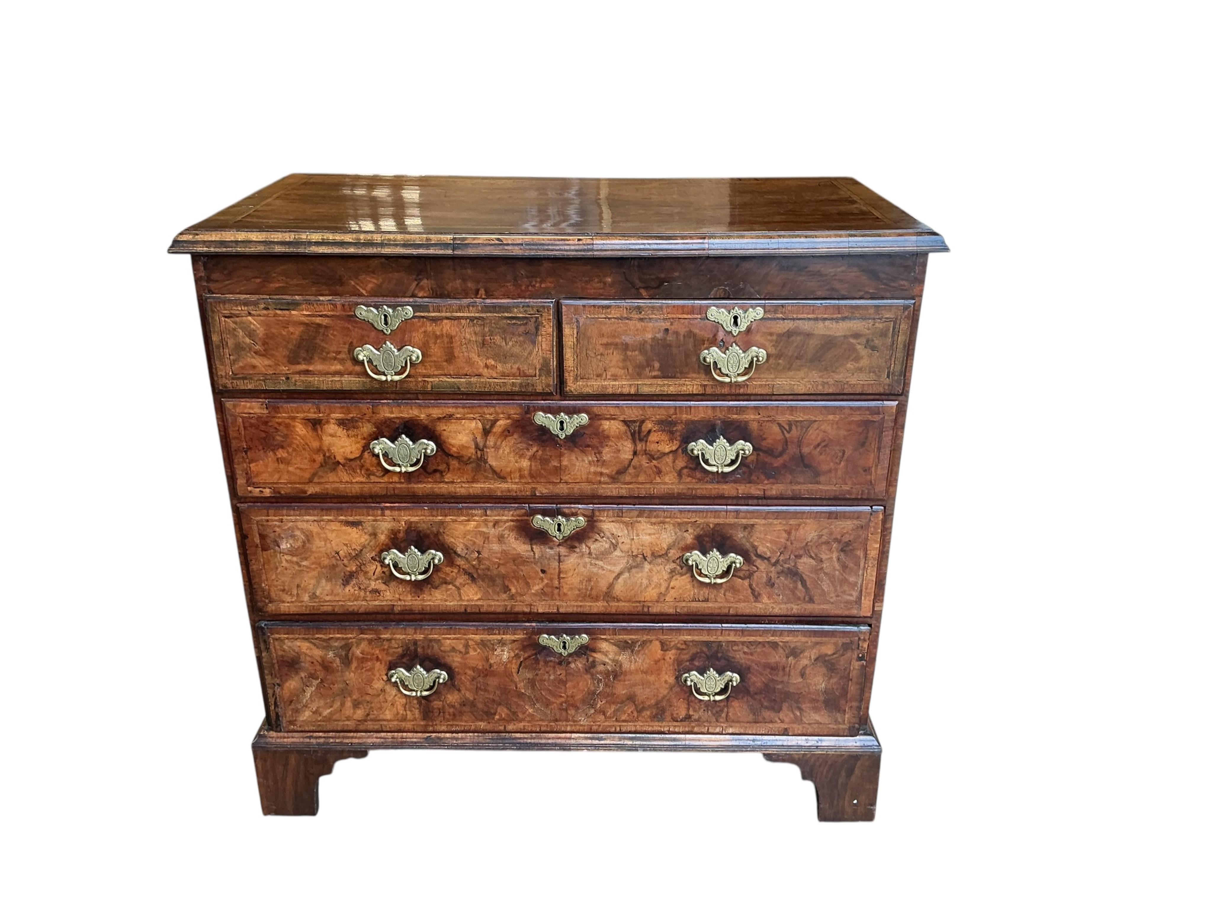 Lot 254 , An 18th century feather banded walnut chest of drawers, width 104cm, depth 52cm, height 100cm