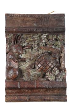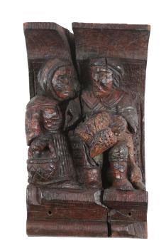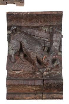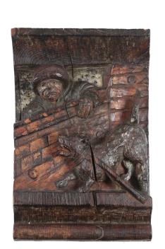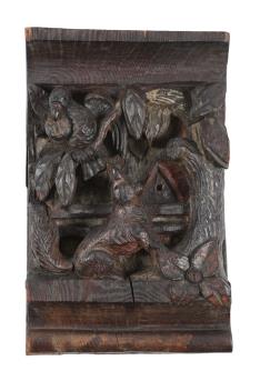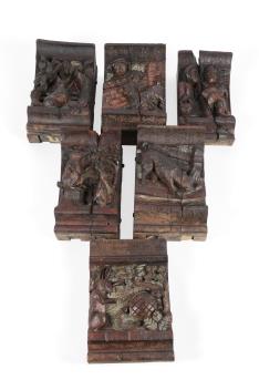 Lot 287 , A set of six Northern European carved oak figural carvings of Aesops Fables