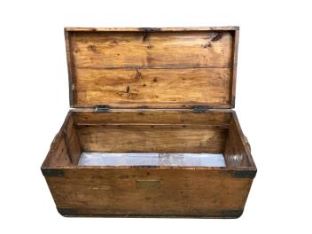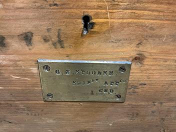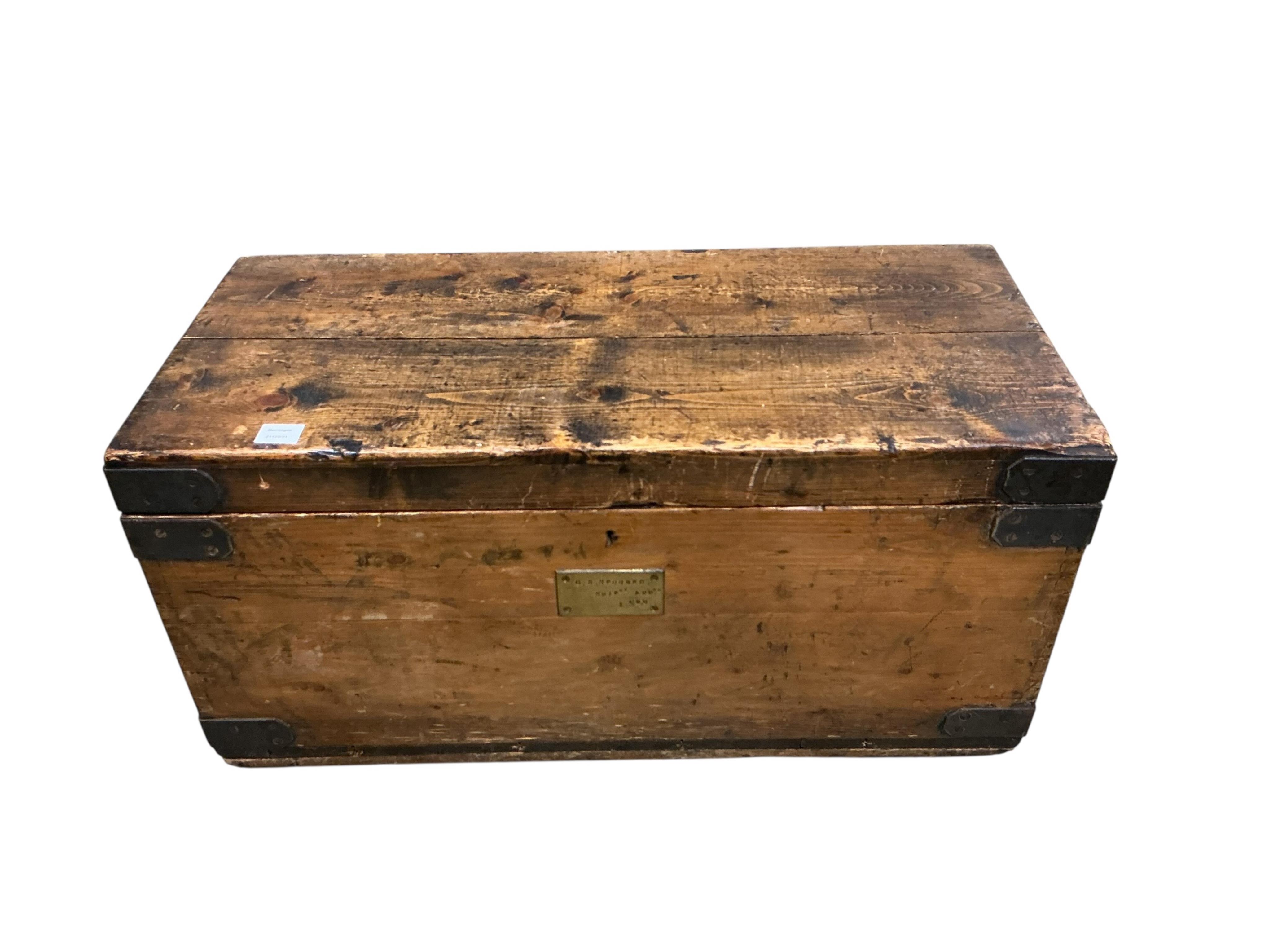 Lot 1283 , A 19th century pine seaman's chest with plaque inscribed G. S. Spooner SHIPrt APPce CMD, width 97cm, depth 45cm, height 47cm