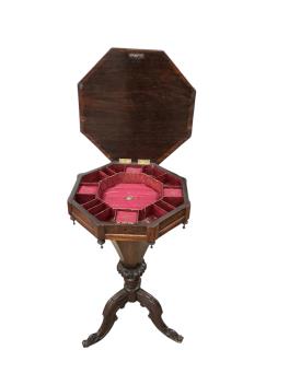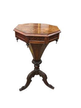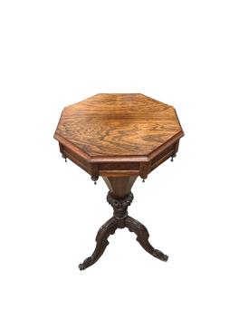 Lot 178 , A Victorian rosewood octagonal trumpet sewing table, width 44cm, depth 44cm, height 75cm