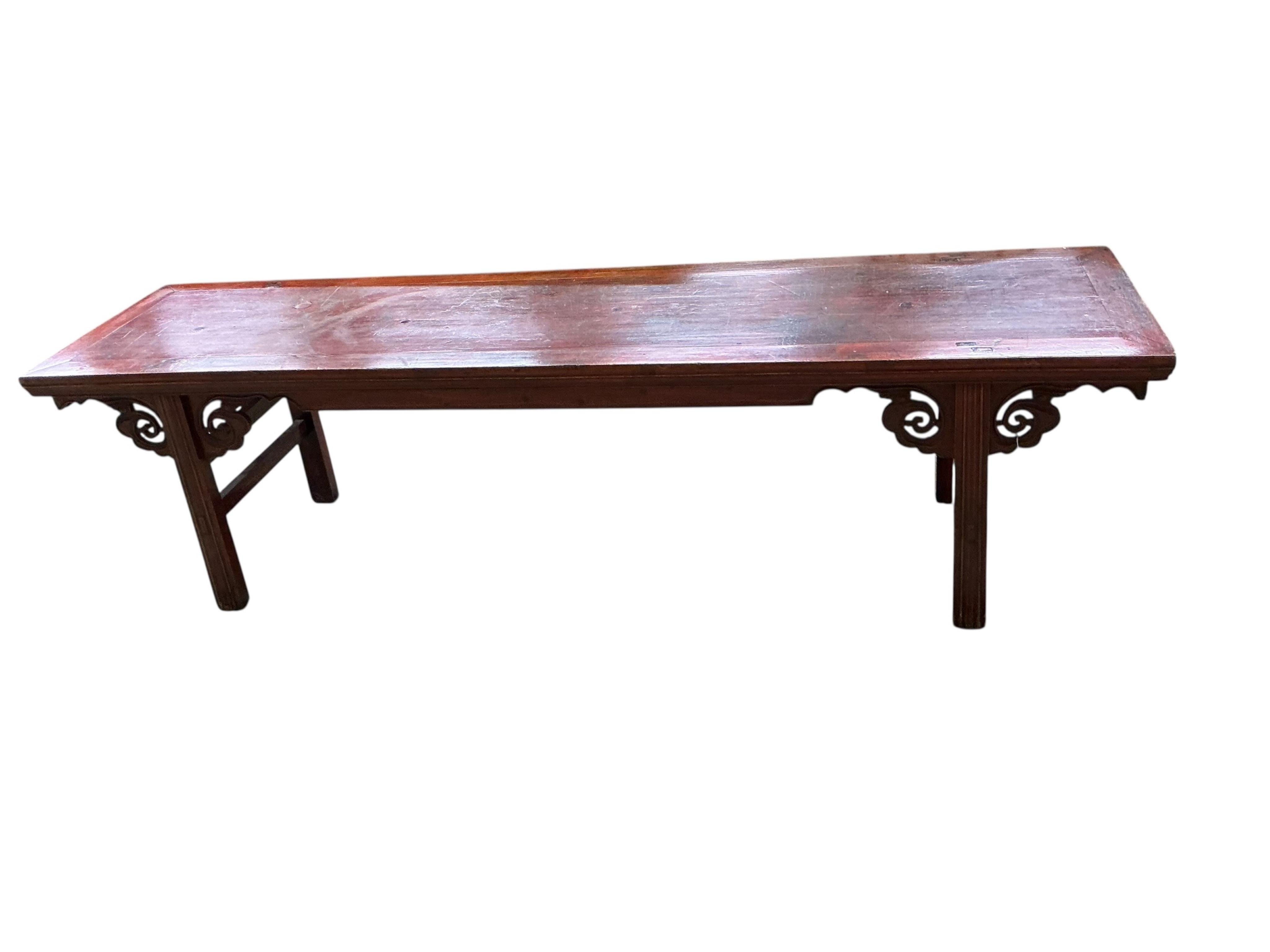 Lot 1292 , A 19th century Chinese lacquer low bench, width 191cm, depth 49cm, height 52cm
