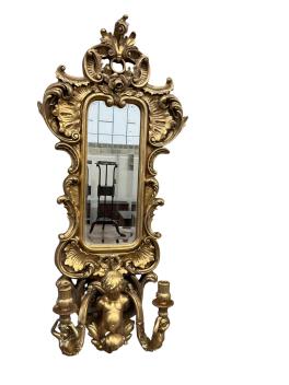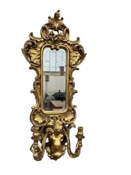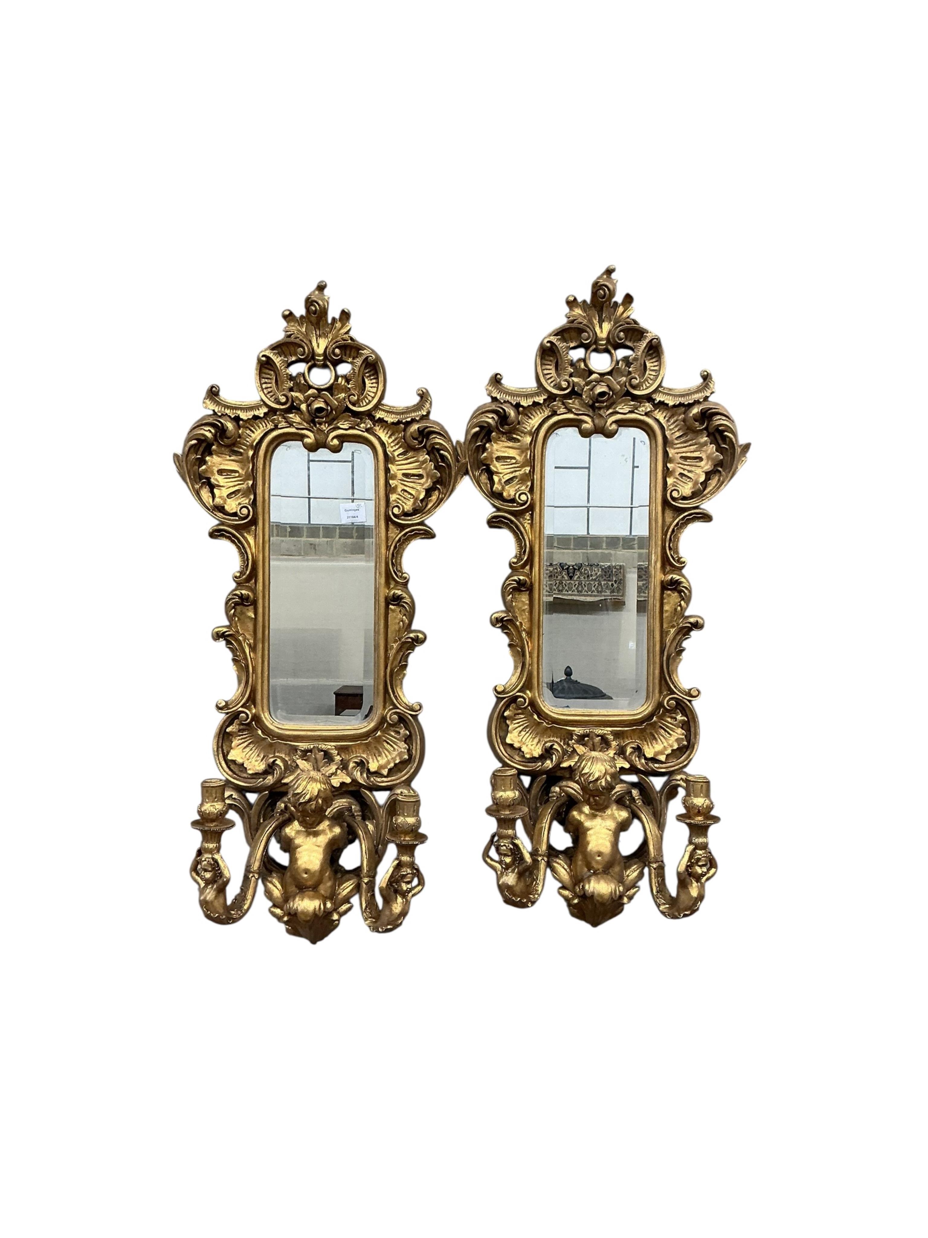 Lot 1265 , A pair of Baroque Revival gilt and composition girandole wall mirrors with cherub sconces, width 46cm, height 105cm