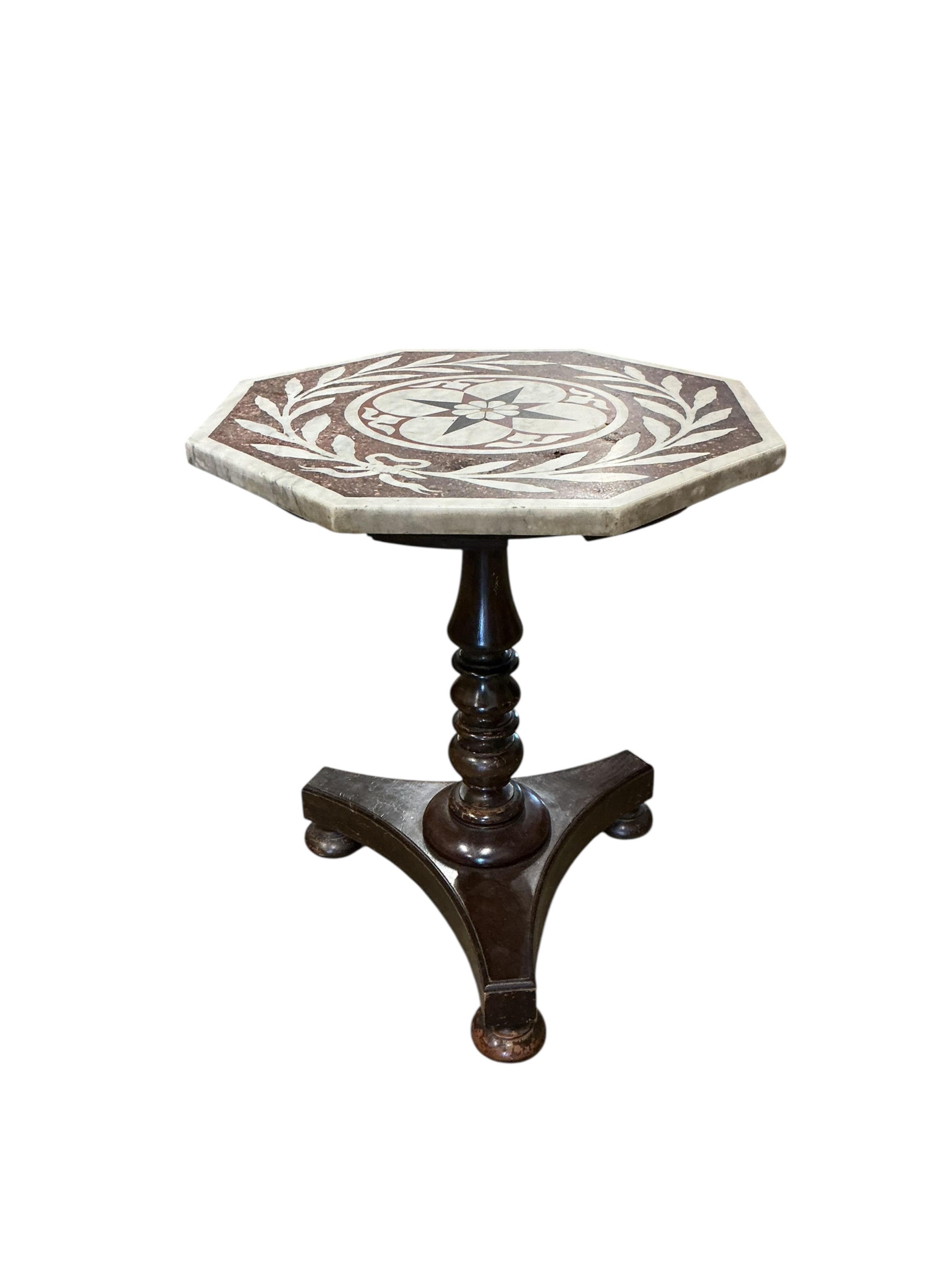 A Victorian mahogany occasional table with associated octagonal marble top, width 46cm, height 52cm