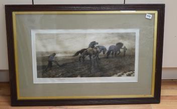 Herbert Dicksee RE (1862-1942), ‘The Last Furrow’, signed in pencil, etching, 30 x 58cm