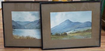 Douglas Alexander RHA (Irish, 1871-1945), ‘The Sugar Loaf, Wicklow’ and ‘Glendalough, Wicklow’, signed, pair of watercolours, 24 x 36cm