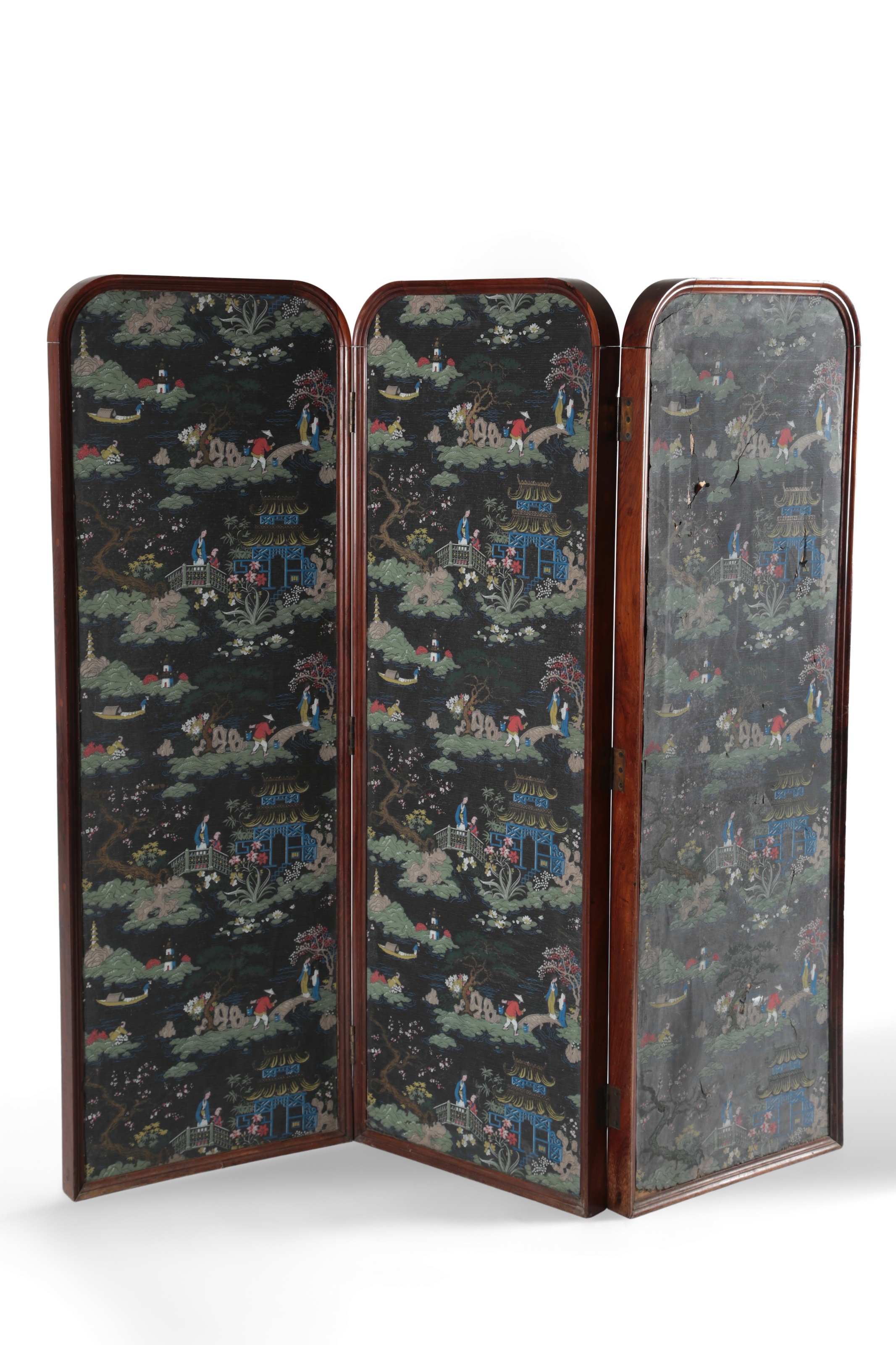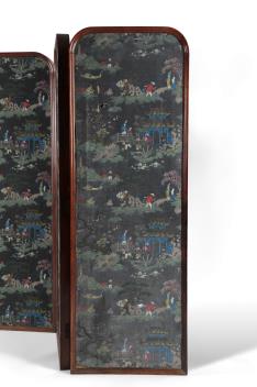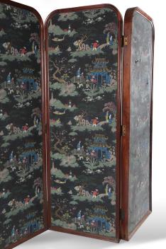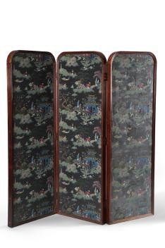 Lot 330 , A French rosewood framed chinoiserie three fold screen