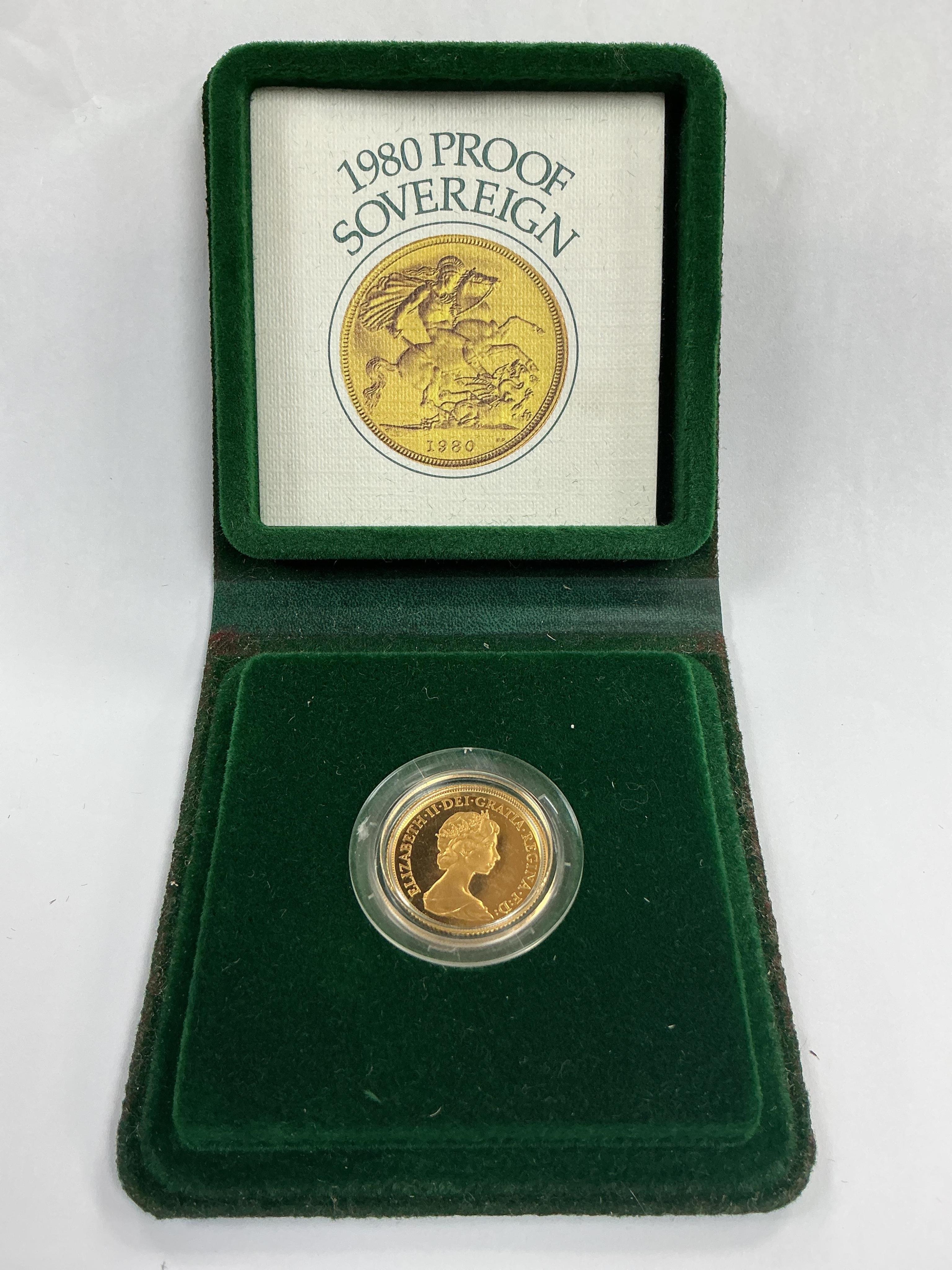 British gold coins, Elizabeth II, Royal Mint gold proof sovereign, 1980, in case of issue