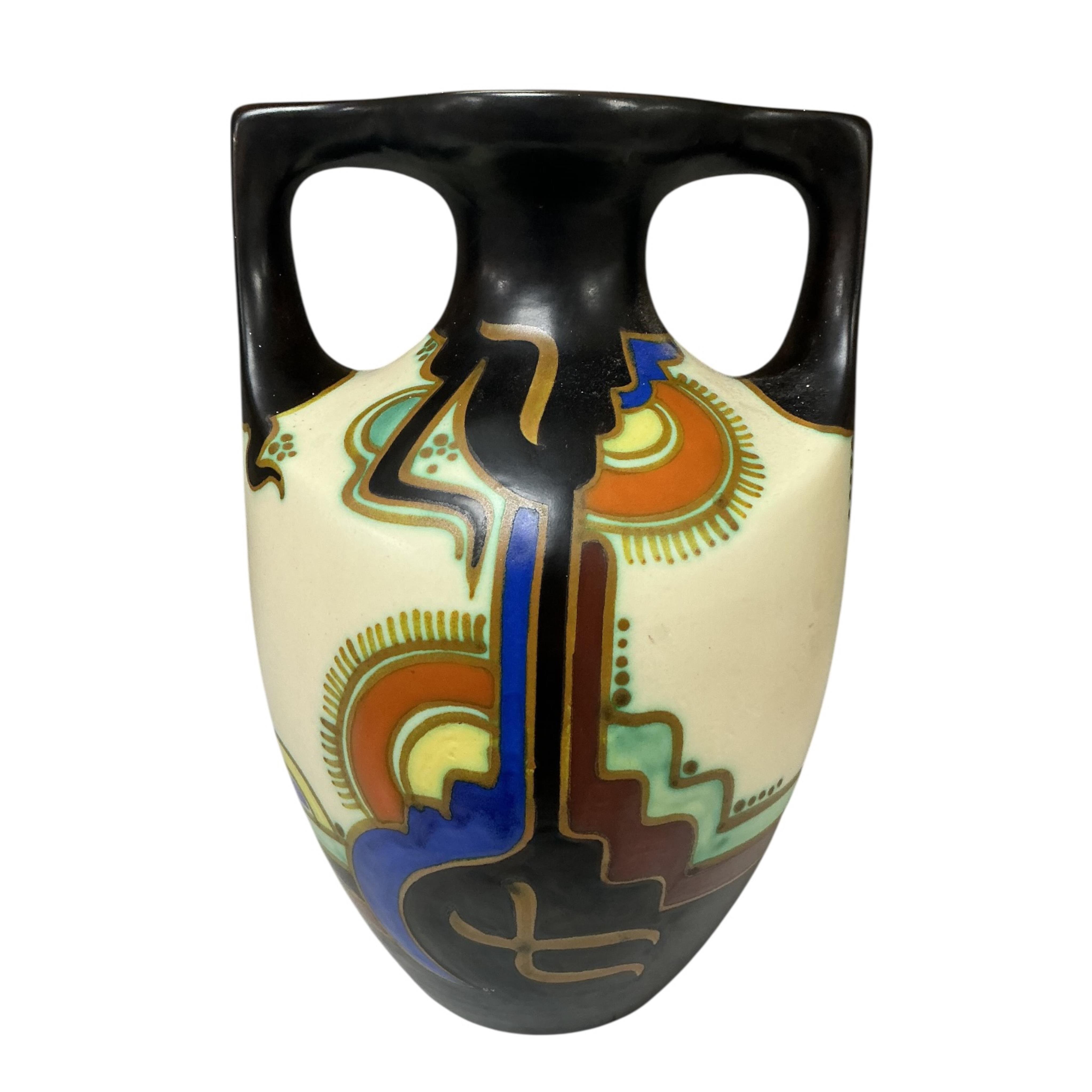 Lot 1436 , A Gouda two-handled vase, height 27.5cm.