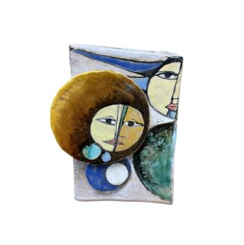 Elio Schiavon (1925 / 2004) an art pottery figural vase with applied discs, height 20cm.