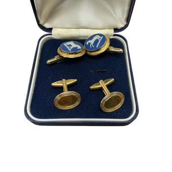 Lot 1937 , A collection of three pairs of cufflinks, including a pair modelled as jockey's helmets and riding crops in enamel, a pair of jasperware ceramic cufflinks by Wedgwood and another pair in gilt metal; together with two ena