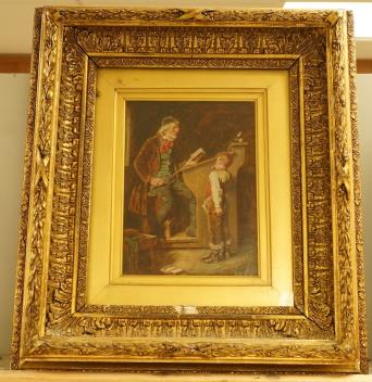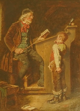 Mark William Langiois (1848-1924), ‘A Rod in Pickle’, signed with initials, details verso, oil on canvas, 20 x 15cm