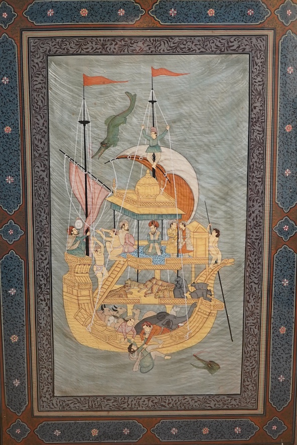 Indian Mughal style, Noah’s Ark, gouache, with stylised border, 103 x 70cm