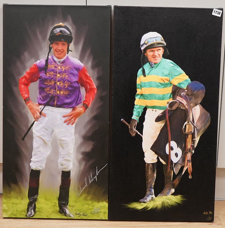 Lolly Pop, ‘AP’ and one other, two limited edition horse racing interest giclee prints on canvas, hand numbered, one with COA verso, unframed, 76 x 38cm