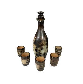 Lot 1439 , Agnete Hoy for Doulton Lambeth, a stoneware liqueur or sake set, circa 1955, including decanter (22cm) and five beakers (5cm), (6).