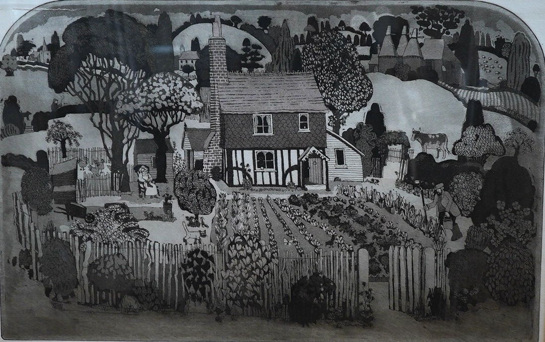 Lot 3315 , Graham Clarke (b.1941) ‘Cottage Gardeners’, signed in pencil to the margin, artist proof etching with aquatint, 36 x 56cm