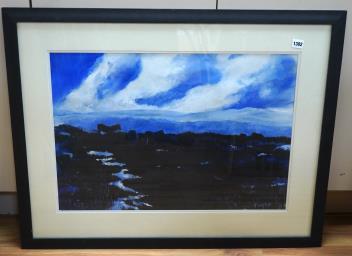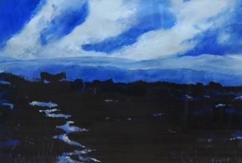 Lot 3302 , Adrienne Fryer (contemporary), ‘Dartmoor Blues’, signed lower right, watercolour over traces of pencil, 49cm x 68cm