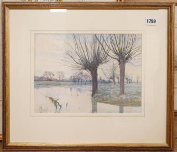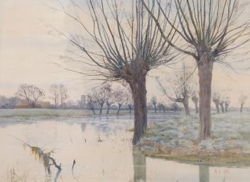 Arthur Anderson Fraser (1861-1904), ‘Near Bedford, Overshot’, 1884, monogrammed and dated lower right, ex. Abbott & Holder, watercolour, 29 x 22cm