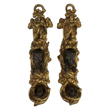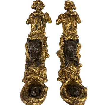 Lot 1446 , A pair of ormolu and bronze wolf and hare appliqués, 25cm high.