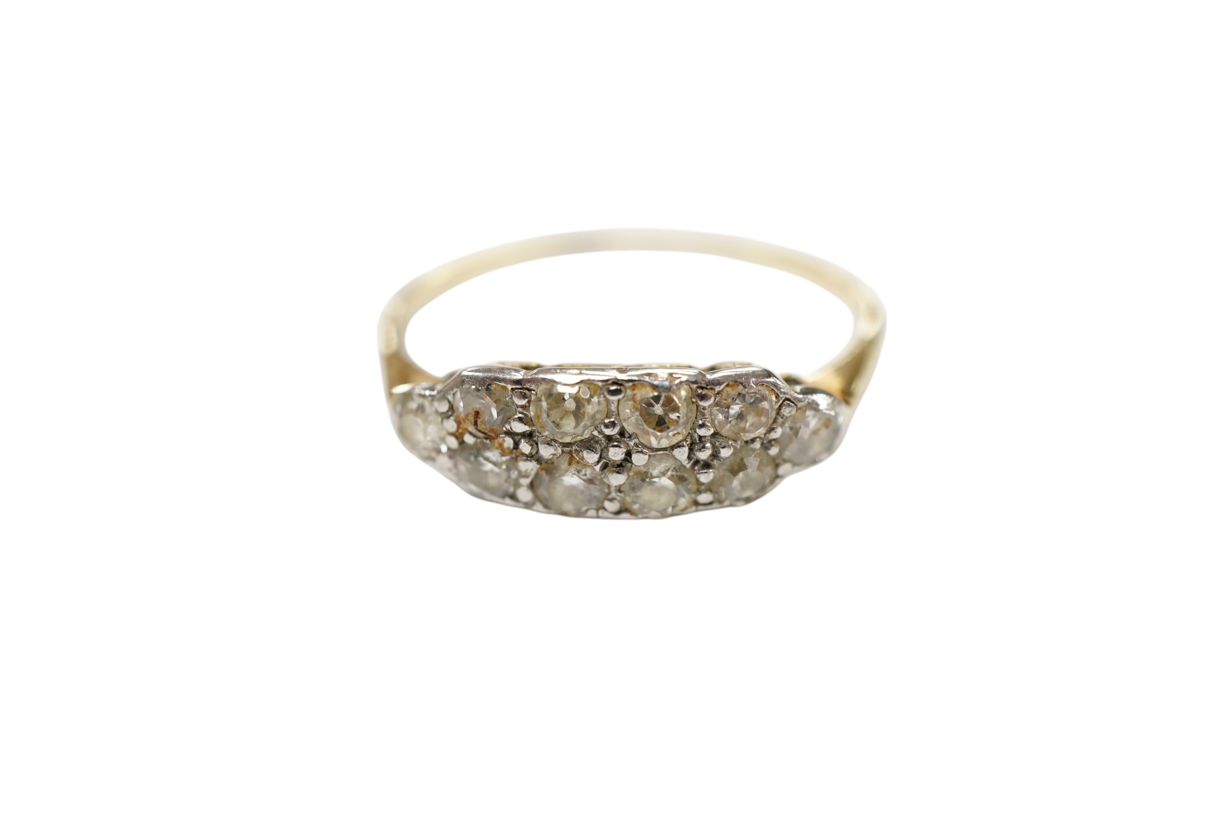 Lot 1926 , An 18ct, plat and ten stone diamond set cluster ring, size O.
