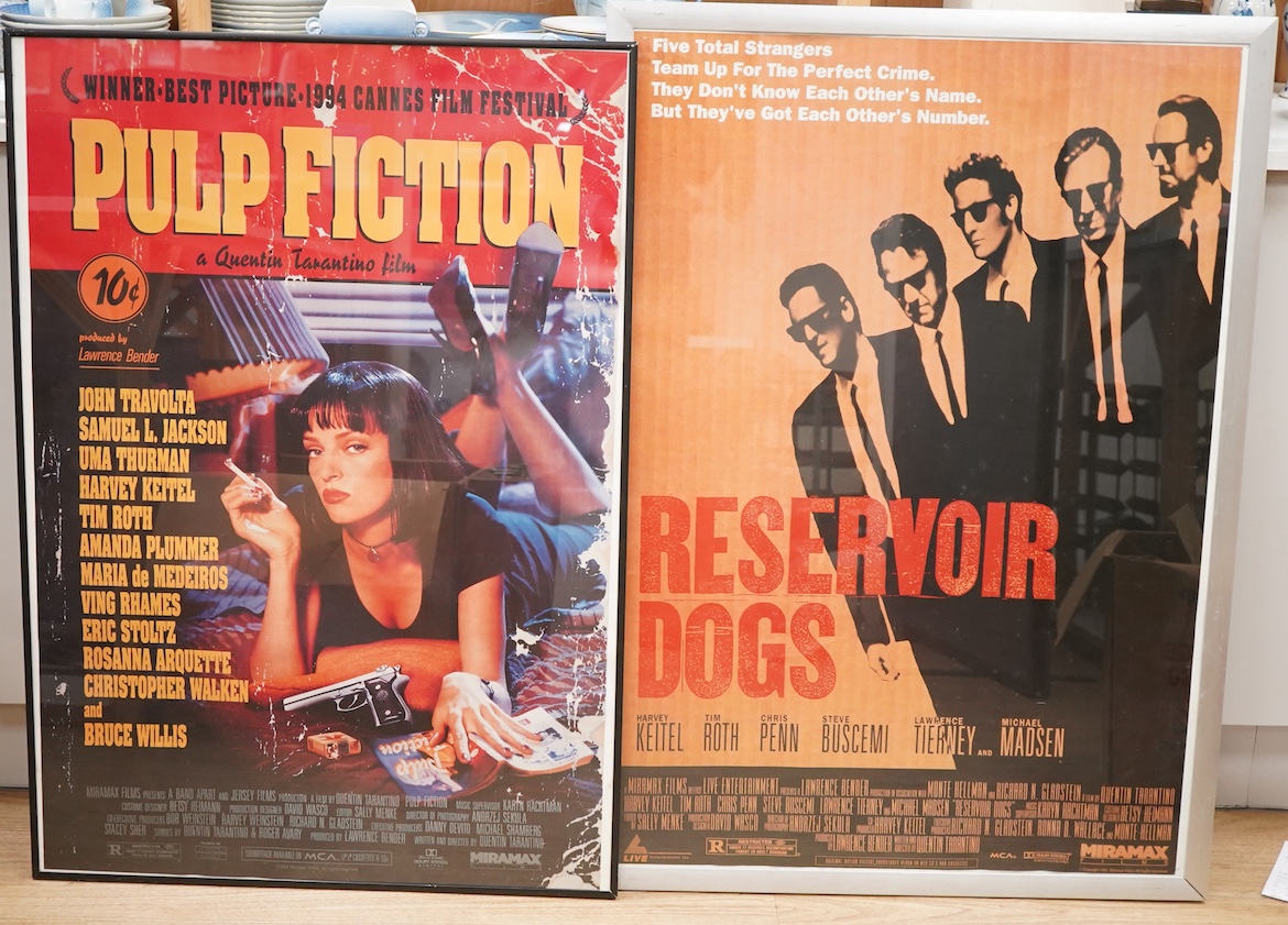 Two film posters comprising Pulp Fiction, 1994, and Reservoir Dogs, 1992, both framed, largest 99 x 69cm