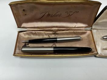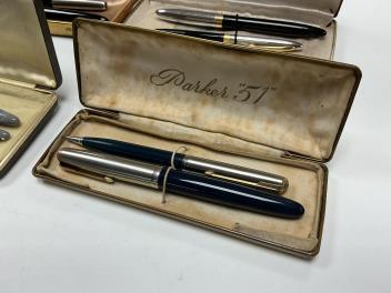 Lot 27 , Four fountain pen and pencil sets to include Parker 51's and Sheaffers
