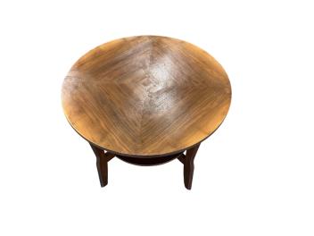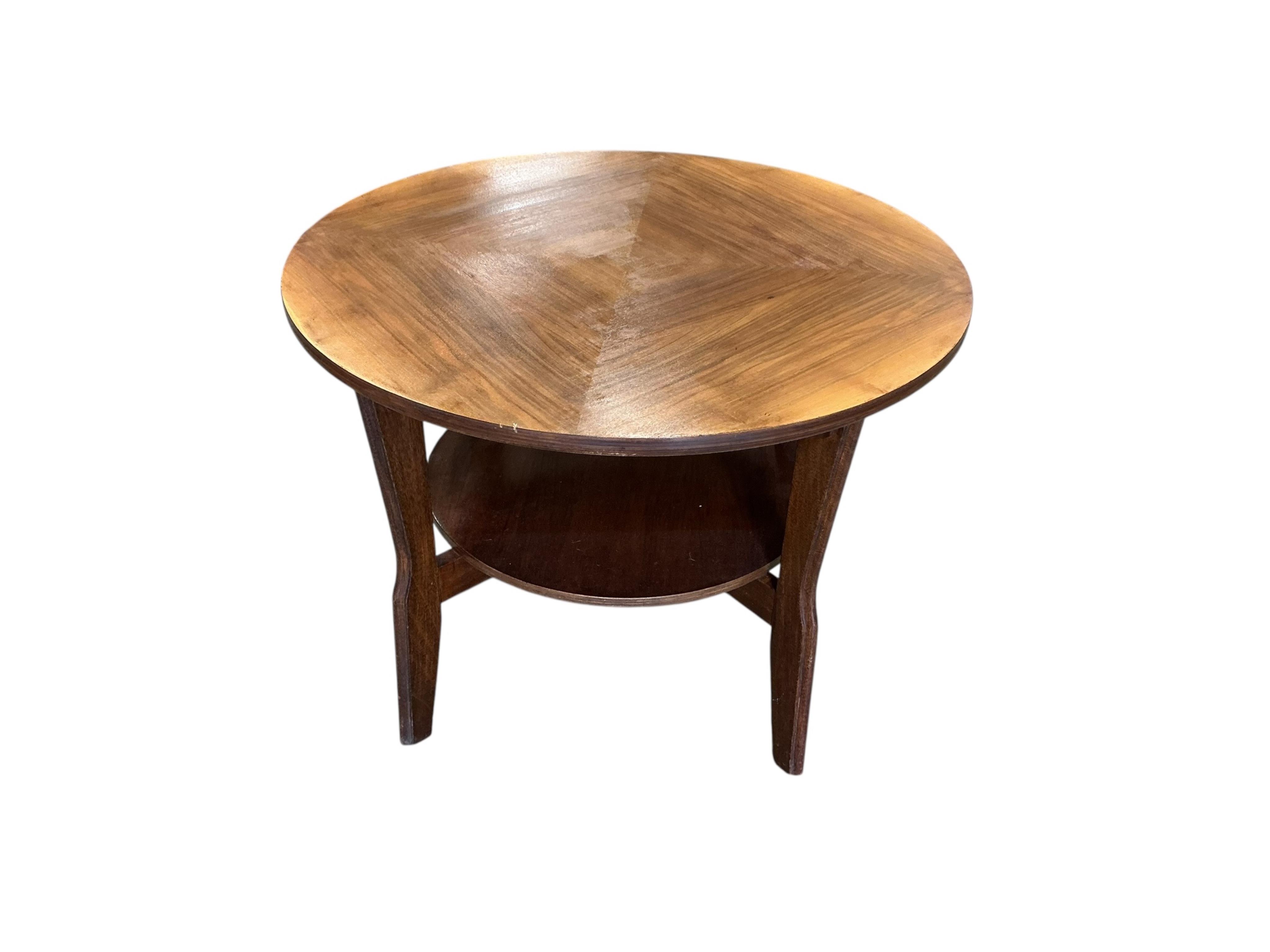 An Art Deco circular walnut two tier coffee table, diameter 61cm, height 45cm