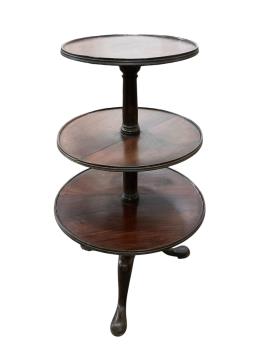 Lot 215 , A George III mahogany three tier dumb waiter, diameter 61cm, height 103cm