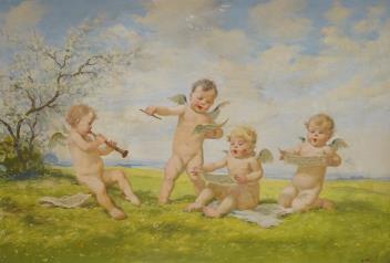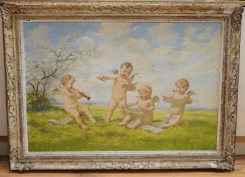 Lot 742 , Oldra Vlach (Czech, 1886-1958), Cherubs, signed, oil on board, 63 x 93cm