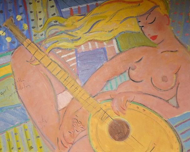 Kanwaldeep Singh Kang (1964-2007), ‘Girl with Mandolin’, oil on canvas, unframed, 76 x 94cm