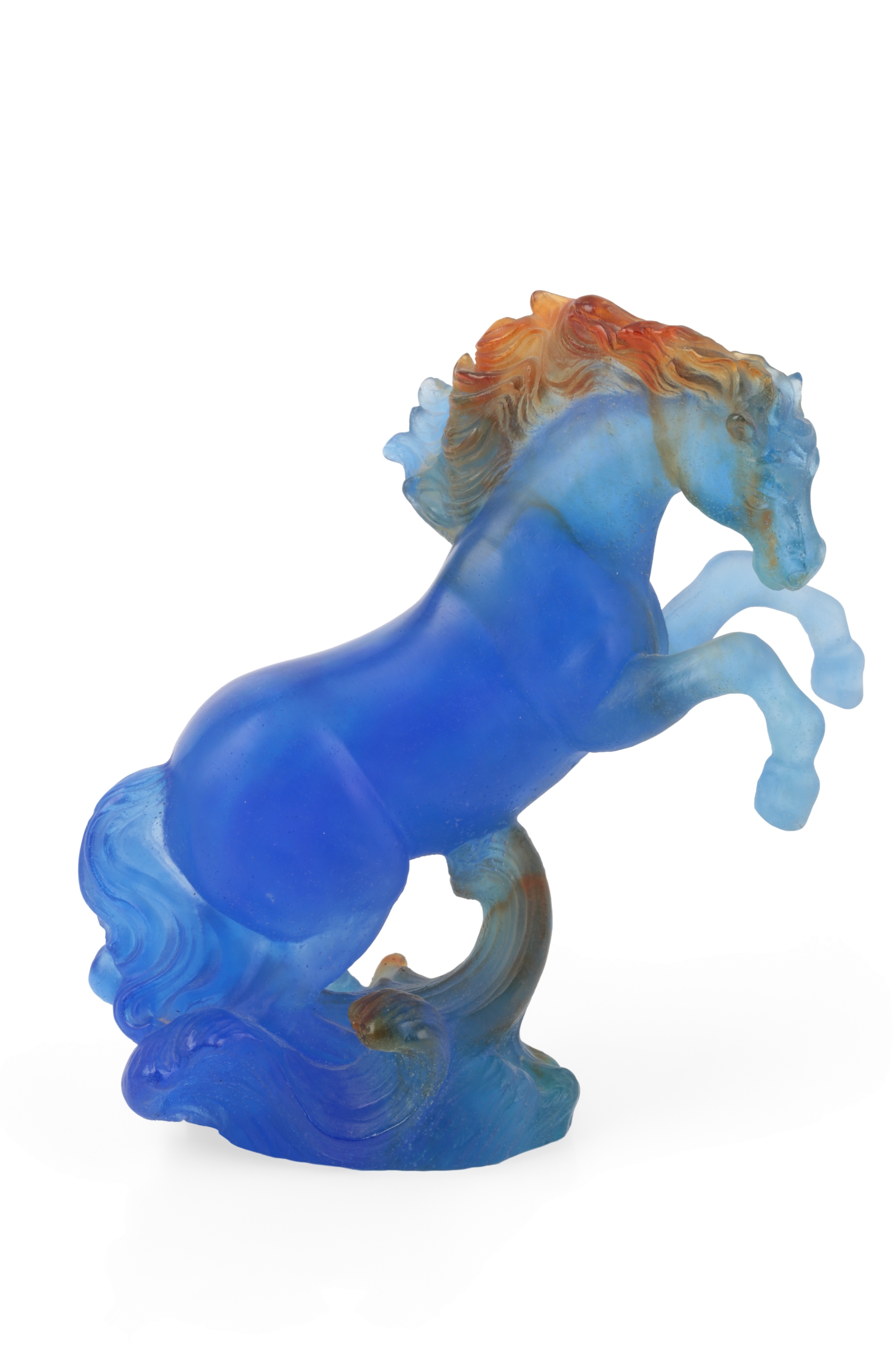 Daum, Nancy: A pâte-de-verre rearing horse, from the 'Chevaux De Marly' collection, etched signature to the underside, 22cm high