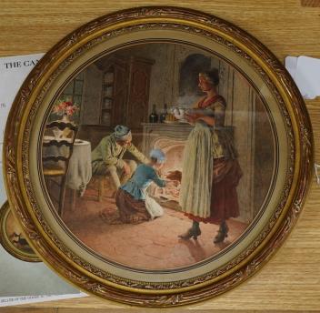 Maurice Leloir (French, 1853-1940), ‘Le Repas du Soir’, signed, Galerie Georges Petit ink inscribed label verso, with accompanying paperwork from The Canon Gallery, tondo watercolour, 27cm in diameter