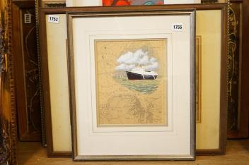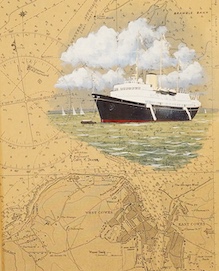 Lot 1755 , Colin M. Baxter (contemporary), ‘HMY Britannia off Cowes’, signed, details verso, gouache over a shipping chart, 25 x 20cm