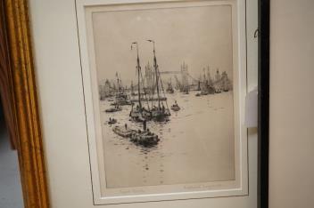 Lot 1743 , Rowland Langmaid RA (1897-1956), ‘Victory’ and ‘Tower Bridge’, each signed in pencil and inscribed to the margin, two etchings, largest 21 x 16cm