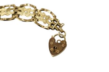 Lot 1927 , A 9ct gold gate bracelet, to a heart-shaped padlock clasp, length 17cm, British hallmarks, gross weight approximately 9.5 grams